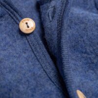 Dank der vier naturfarbenen Holzknöpfe geht das An- und Ausziehen des Walkoveralls schnell und kinderleicht. Zusätzlich besitzt der Overall praktische Umschläge zum Verschließen an den Armen und Beinen.