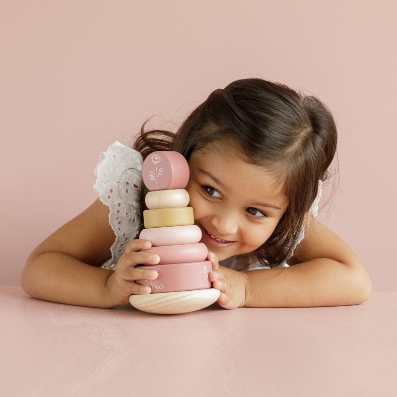 Little Dutch Holz-Stapelturm mit Ringen ‚Wild Flower‘ rosa/natur