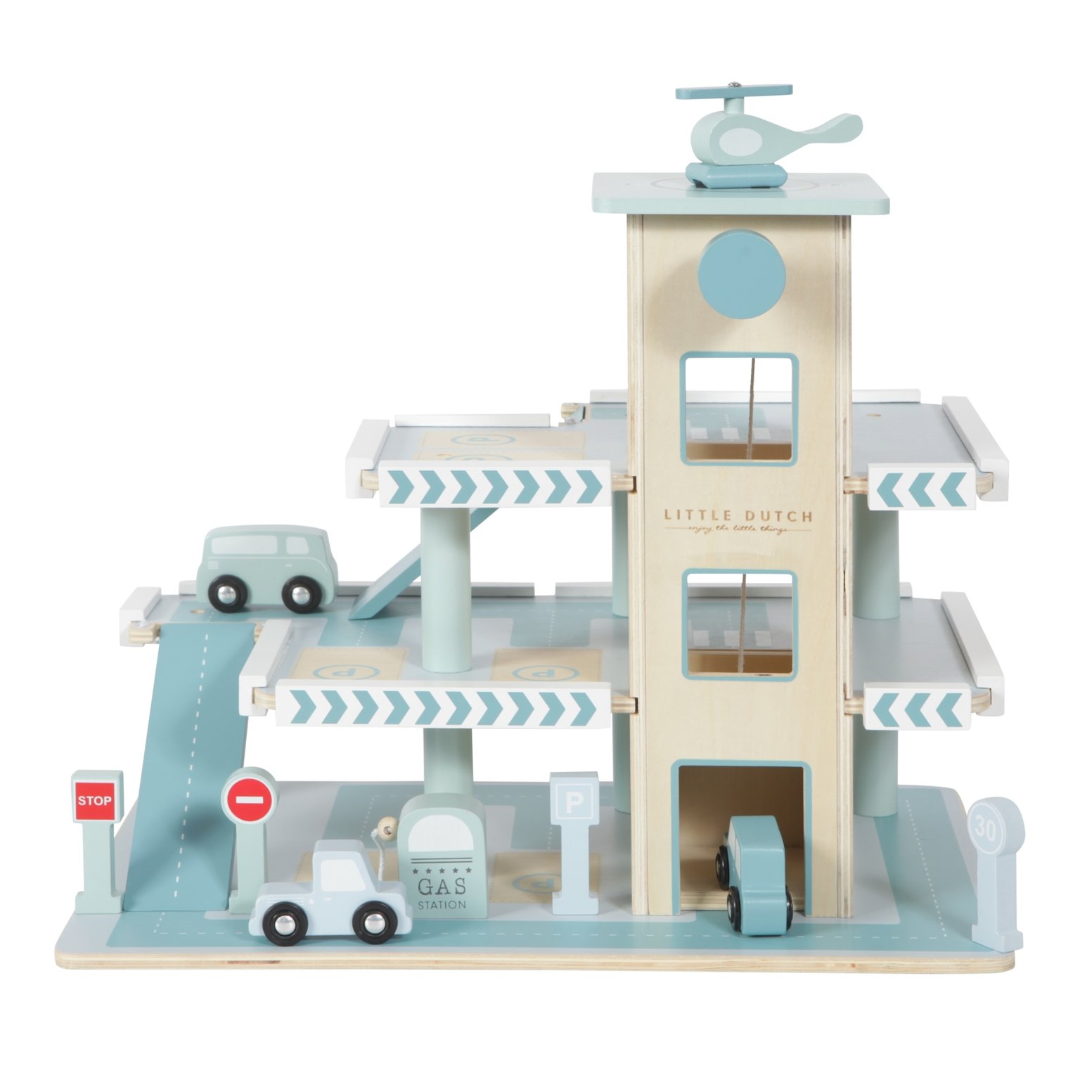 Das schöne Parkhaus aus Holz von Little Dutch ist fantastisch und garantiert stundenlange Spielfreude. Mit einer einfach zu bedienenden Hebebühne kann Ihr Kind die Autos nach oben und unten bewegen. Es gibt einen Helikopter, der auf der Helikopterplattform auf dem Garagendach landen kann. Alle Autos können auf den Parkplätzen geparkt werden und Verkehrsschilder geben an, wie schnell die Autos fahren und wo sie nicht einbiegen dürfen! Nach einer langen Fahrt können die Autos dann an der Tankstelle tanken.
