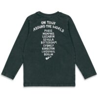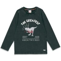 Langarmshirt für Jungen von Sturdy, aus angenehmer Jerseyqualität, Rundhals, Farbe Schwarz, washed-out-Look, coole Prints mit Dino. Material: 96% Baumwolle, 4% Elasthan Waschbar: 40°